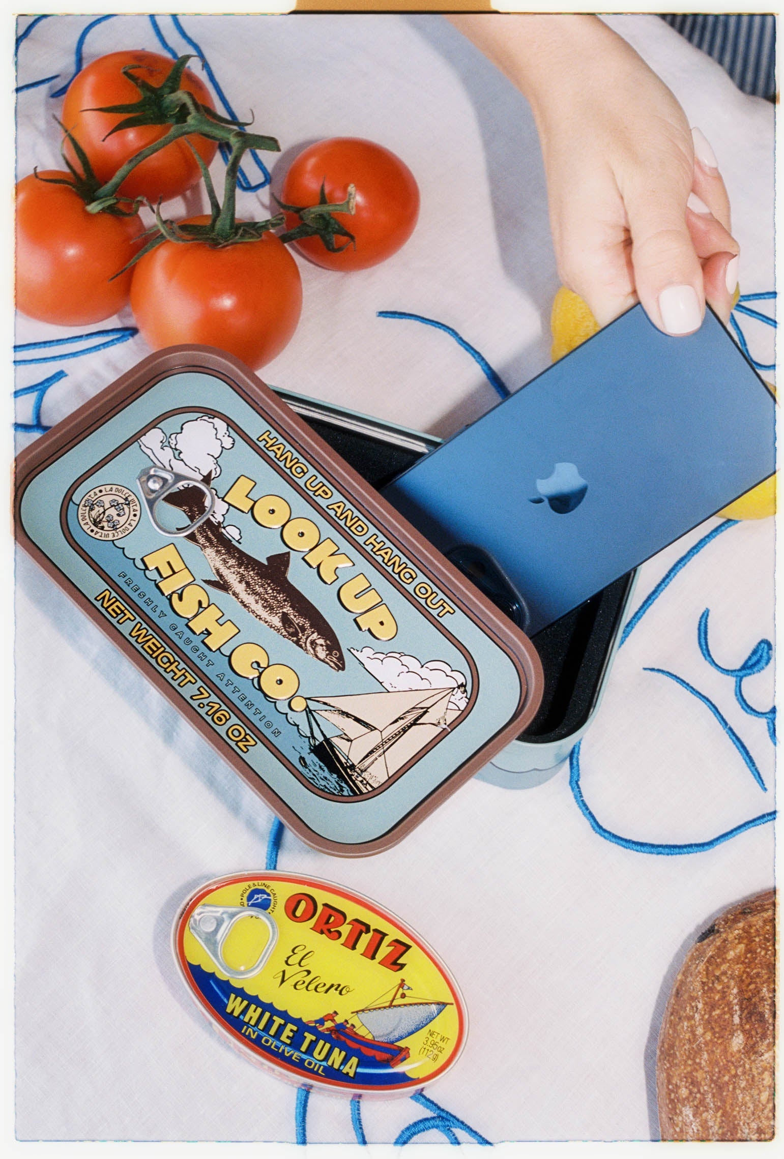 In a world dominated by screens, we've designed a simple yet powerful tool to help you reclaim your time and attention: a box shaped like a sardine tin where you can store your phone, symbolizing the freshness and freedom that comes from unplugging.